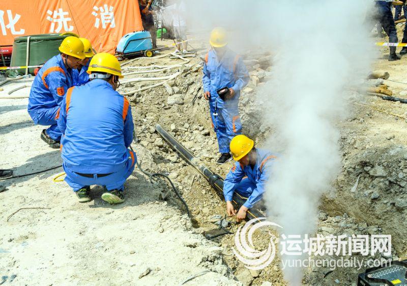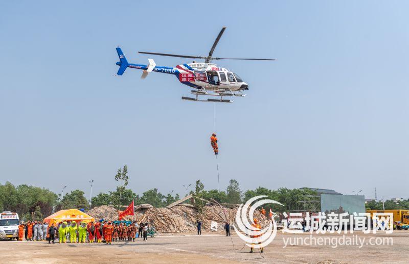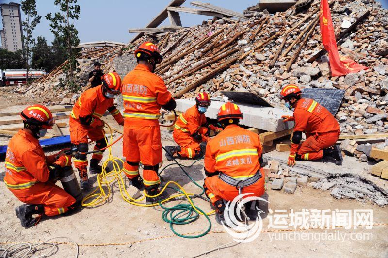 5月10日上午10时许,演练开始。此次演练以模拟运城市盐湖区安邑办事处芦子沟村一带发生5.3级地震,震源深度10公里,地震造成3人死亡,60人被砸伤、掩埋,2000名群众需要紧急转移安置,以及房屋倒塌、道路损毁,水、电、气、通信中断等次生灾害为背景。