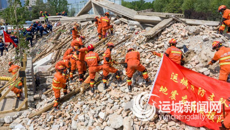 此次演练由运城市人民政府、运城市抗震救灾指挥部主办,盐湖区人民政府、盐湖区抗震救灾指挥部承办,运城市应急管理局、运城市防震减灾中心、运城市应急救援大队、运城市消防救援支队、盐湖区人民武装部、盐湖区应急管理局、盐湖区防震减灾中心等26家单位参加。市委副书记、市长储祥好观摩并讲话。市委常委、常务副市长陈杰现场点评。市人大常委会副主任贾爱珍、市政协副主席陈竹琴观摩。副市长刁海鹏主持。
