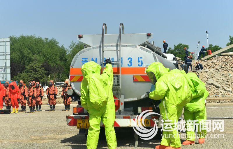 “此次演练中,危化品运输车辆的侦检、洗消、堵漏、输转和直升机救援是我市应急救援大队参与的作业之一。险情发生后,对危化品事故罐车的迅速堵漏、输转,可以有效减少危化品运输车爆炸的概率,保障了人民群众的生命财产安全。开展直升机救援,一方面可以较快地对伤员进行转移,另一方面可以帮助救援队伍快速抵达救援位置。”运城市应急救援大队作训装备科闫斌说。