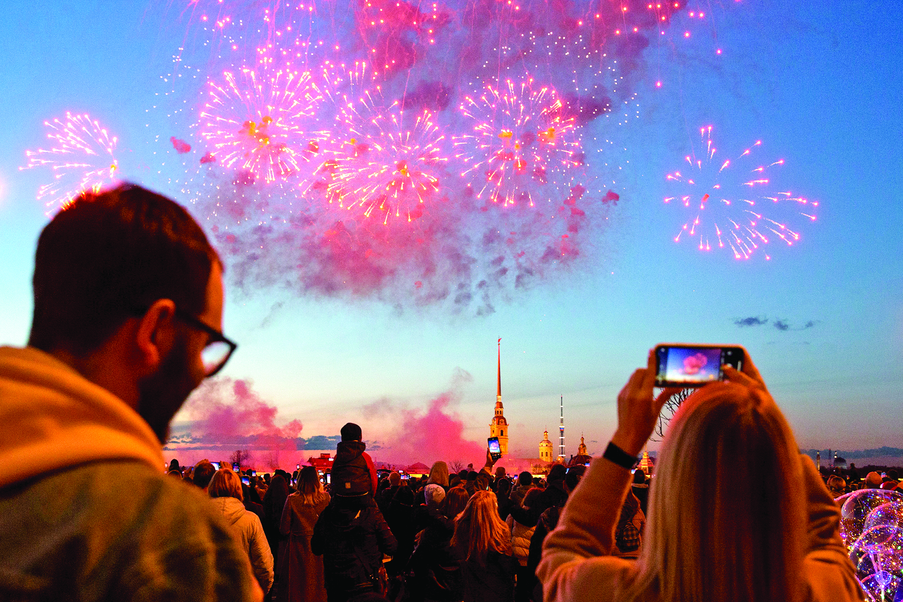 ▲5月9日,人们在俄罗斯圣彼得堡观看烟花。 当日,俄罗斯圣彼得堡燃放烟花,纪念卫国战争胜利76周年。 新华社发(莫京娜 摄)