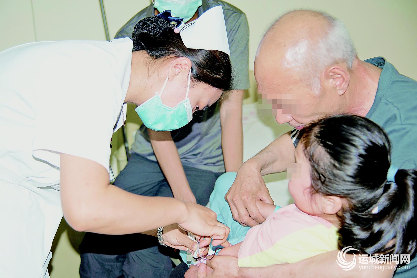 十一日晚十时许,一名女童因为腹痛紧急住院。在患儿家长的帮助下,黄蕊为其抽血。