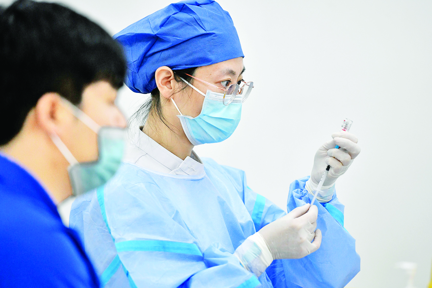 ▲在天津市南开区红旗南路新冠疫苗临时接种点,医务人员准备为快递从业人员接种新冠疫苗(5月12日摄)。 近日,天津市南开区红旗南路新冠疫苗临时接种点,按计划要完成1000余名快递从业人员的第二针疫苗接种任务。