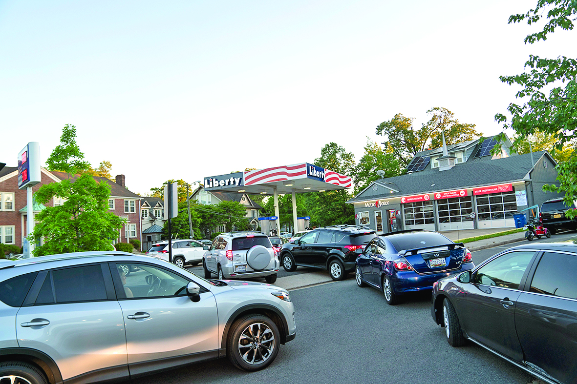 5月12日,美国纽约布鲁克林区的一家加油站的电子屏显示油品价格。 ▼5月12日,车辆在美国弗吉尼亚州阿灵顿一个加油站排队加油。