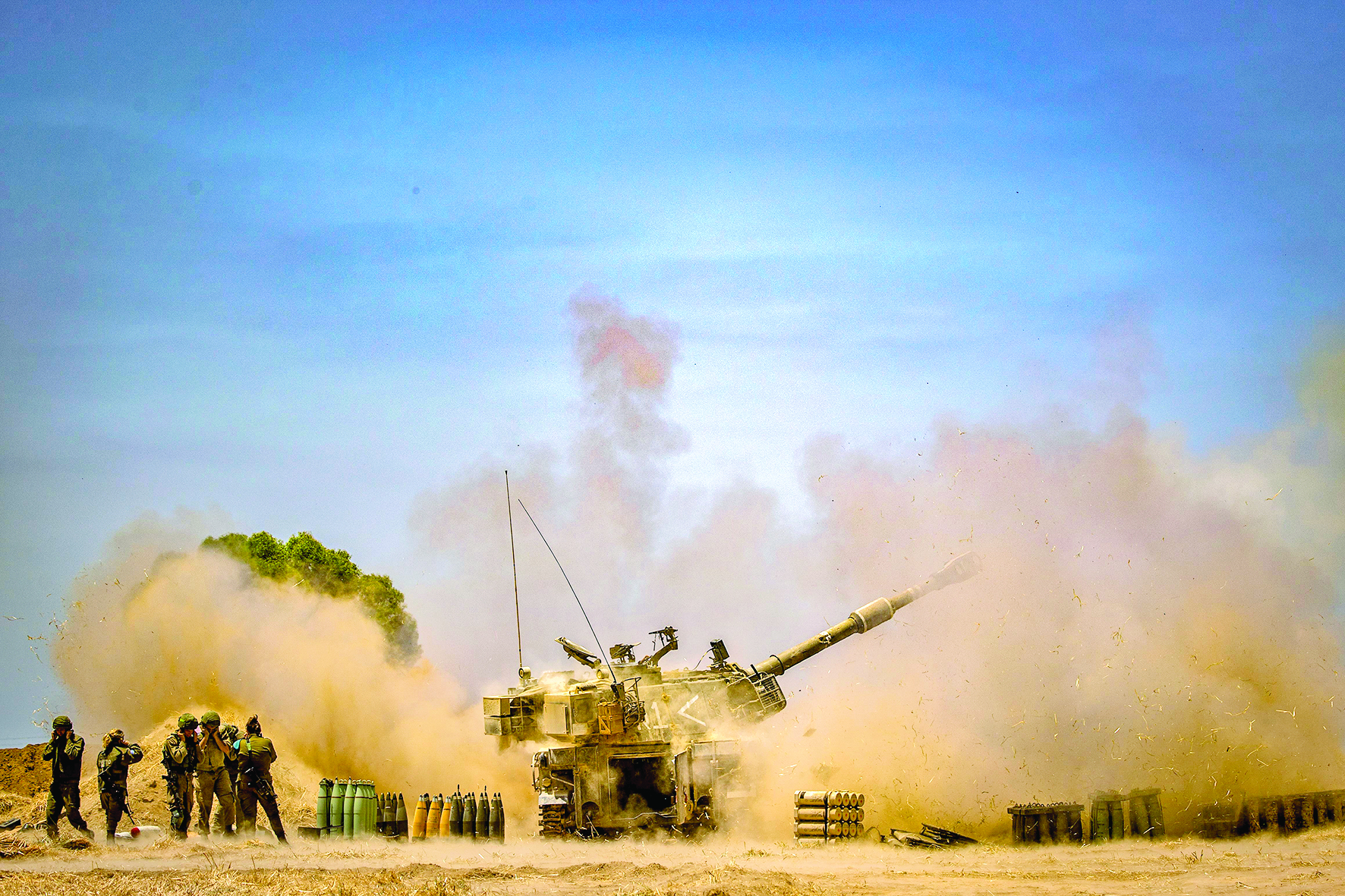 ▲5月12日,以色列炮兵在以色列南部城市斯代罗特向加沙地带目标射击。10日至12日,以色列与加沙地带武装爆发严重冲突。加沙地带武装人员向以方发射1000余枚火箭弹,造成以色列6人死亡、100余人受伤。以军随即展开报复,空袭加沙地带武装组织数百个目标。加沙地带卫生部门发言人阿什拉夫·齐德拉说,以军10日至12日的空袭共造成巴方65人死亡、365人受伤,死者中有16名儿童。 新华社/基尼图片社