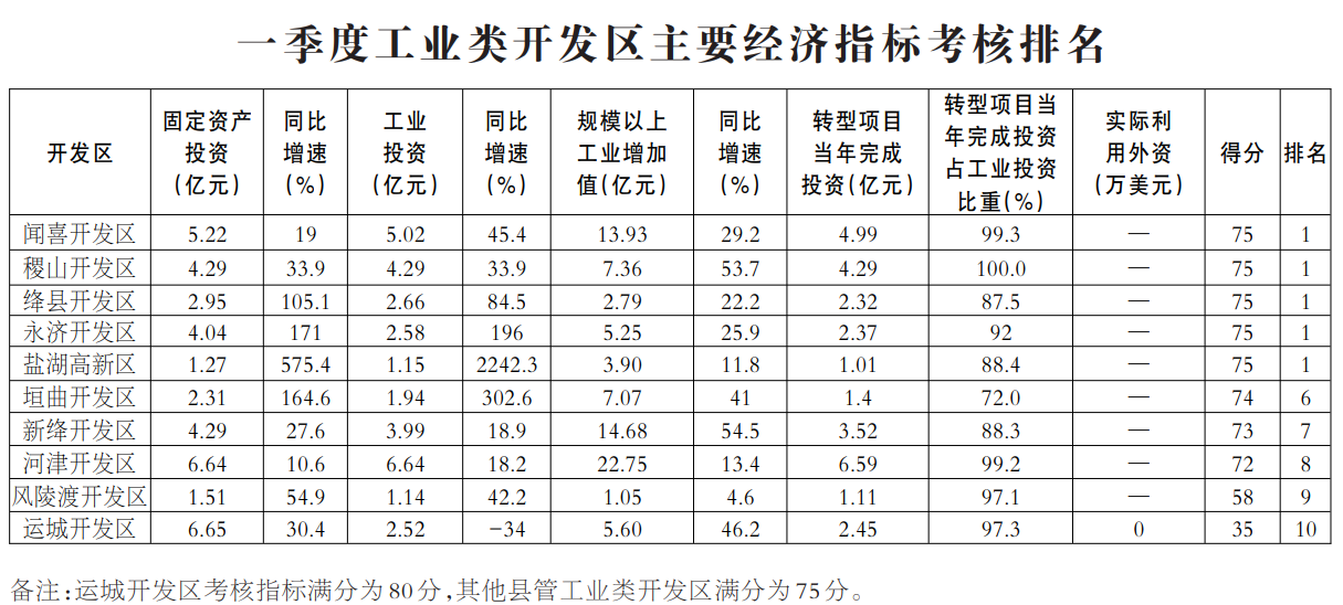 现将各开发区2021年一季度主要经济指标考核排名情况公布如下(见附表)。