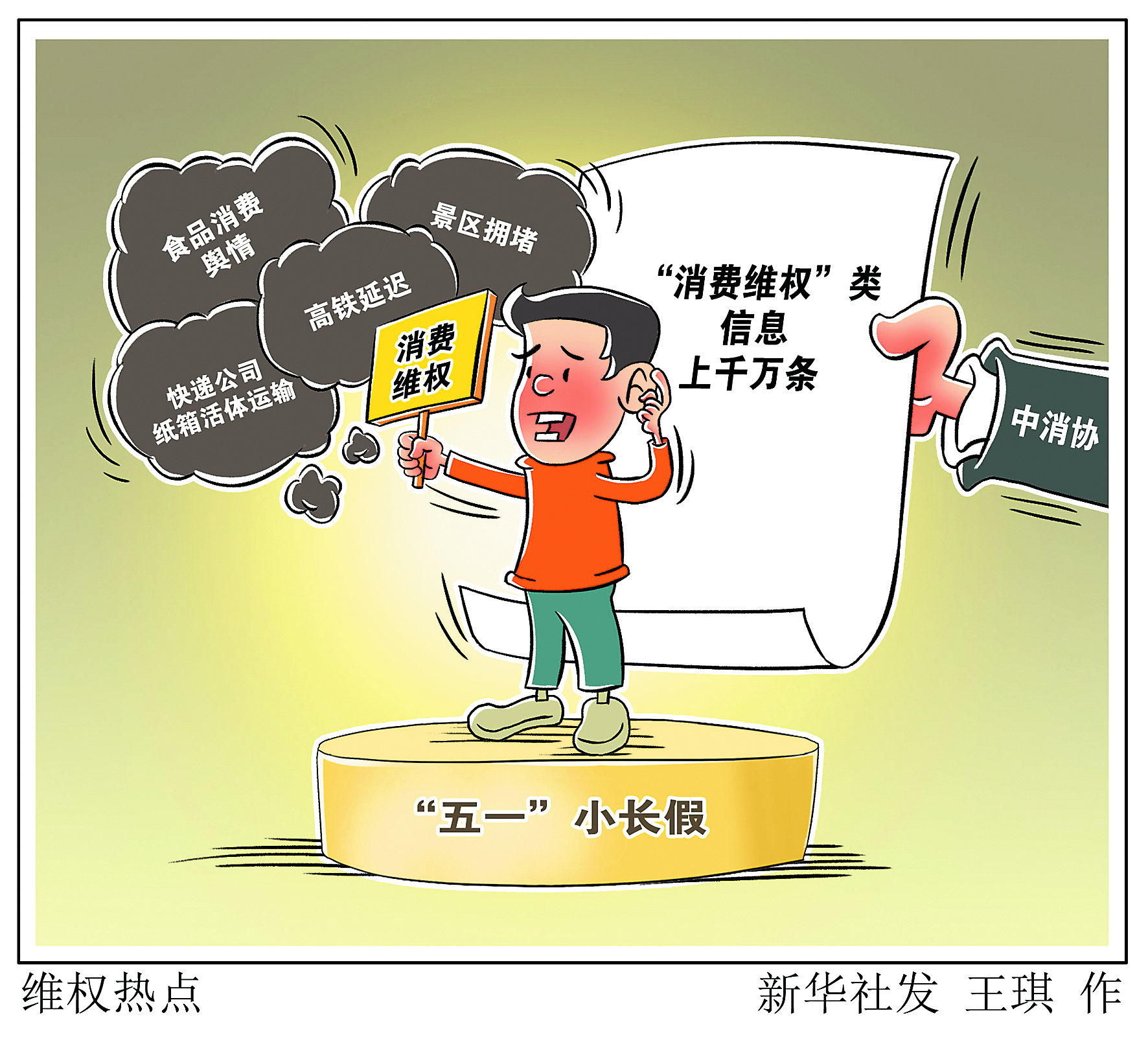 据中消协监测,“五一”小长假期间相关消费维权情况主要存在4方面问题:出行高峰突遇高铁延迟,车站应急管理遭普遍批评质疑;景区拥堵拉低旅游体验,文明旅游教育引导仍待强化;食品消费舆情多维度呈现,安全意识与社会责任感不断提升;网购平台售卖宠物盲盒,快递公司纸箱活体运输。 新华社发 王琪 作
