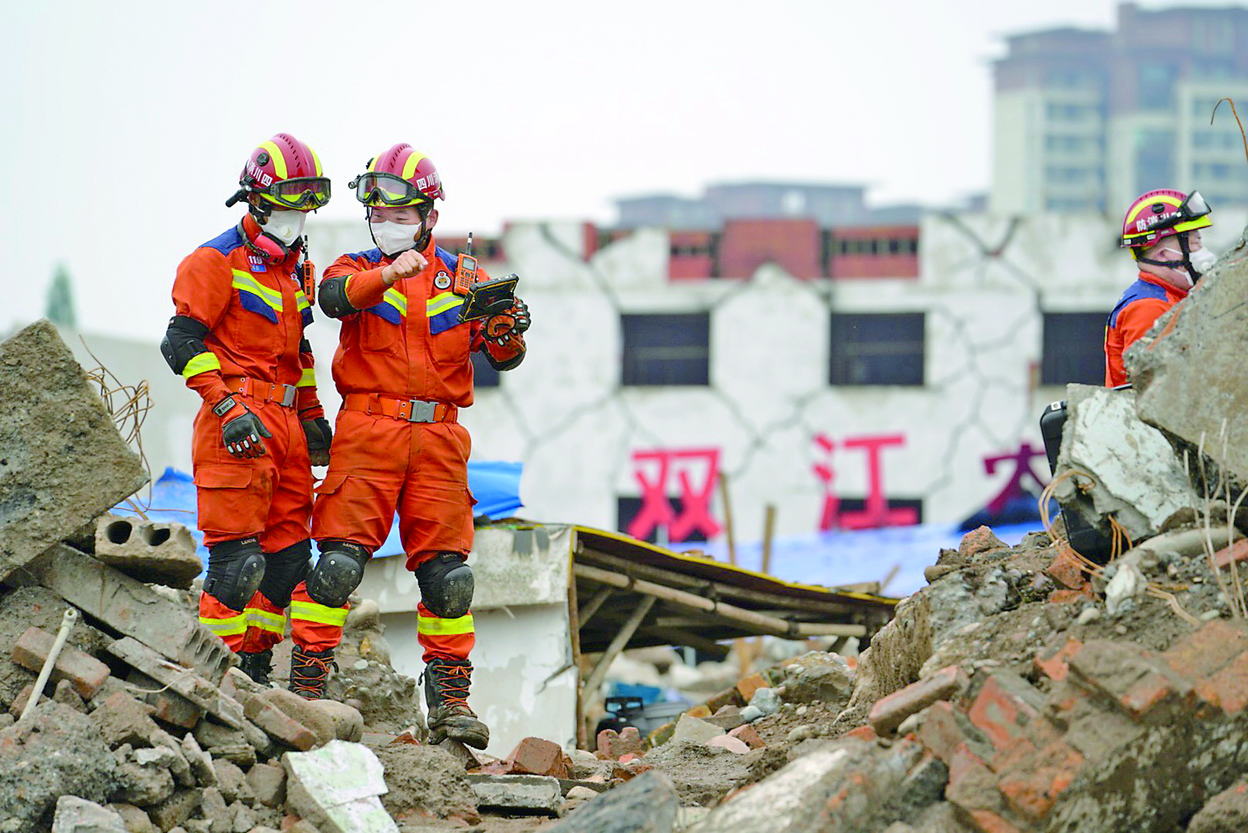 ▲5月14日,参演人员在四川省雅安市雨城区演习现场进行地震救援演练。演习中,四川省三支国家级医疗队首次联合打造方舱医院。