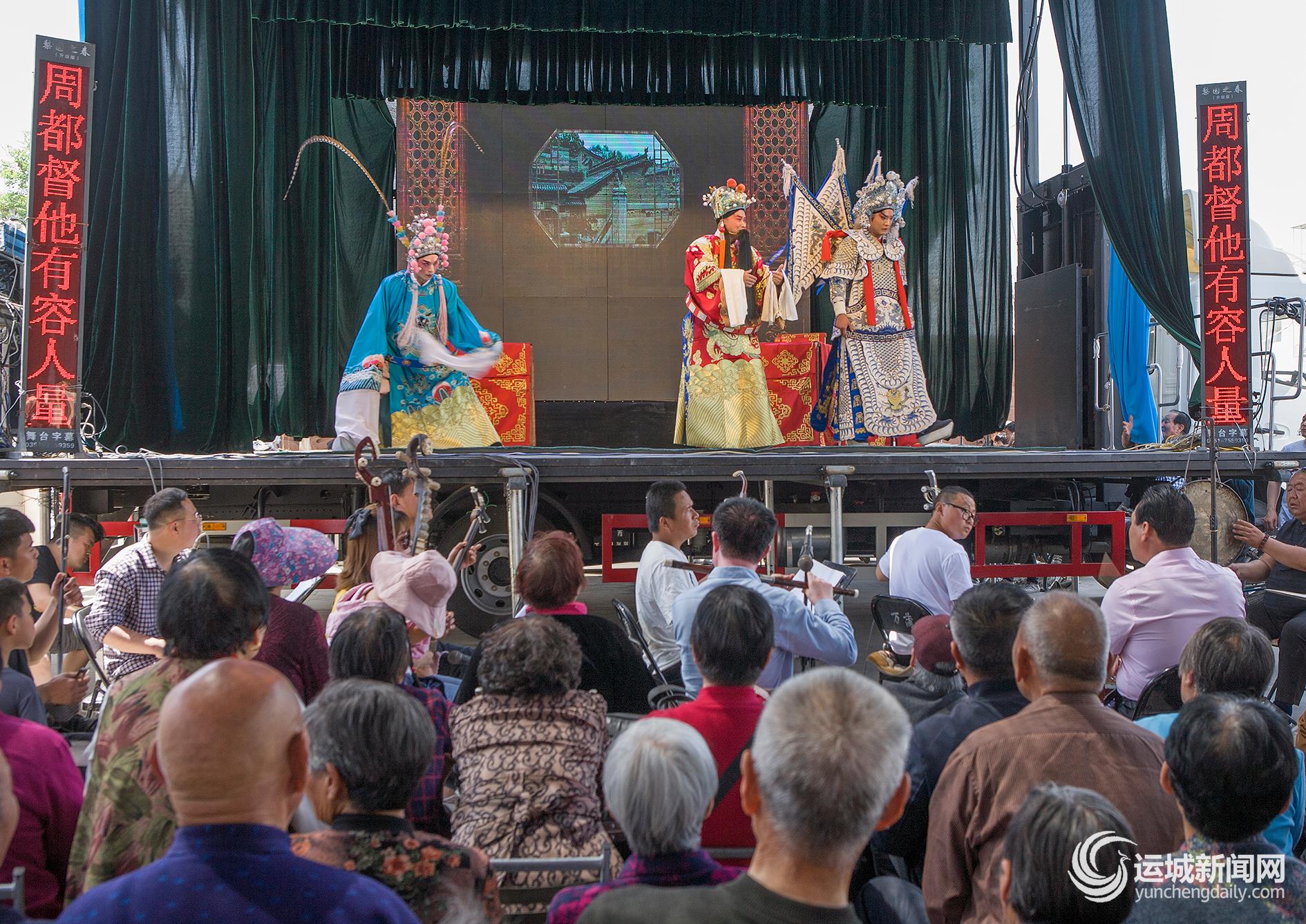 该县文旅局和东岳庙文管所从5月1日开始,在飞云楼前组织9天的歌曲联唱与戏剧展演,使景区游人倍增。 特约摄影 李克荣