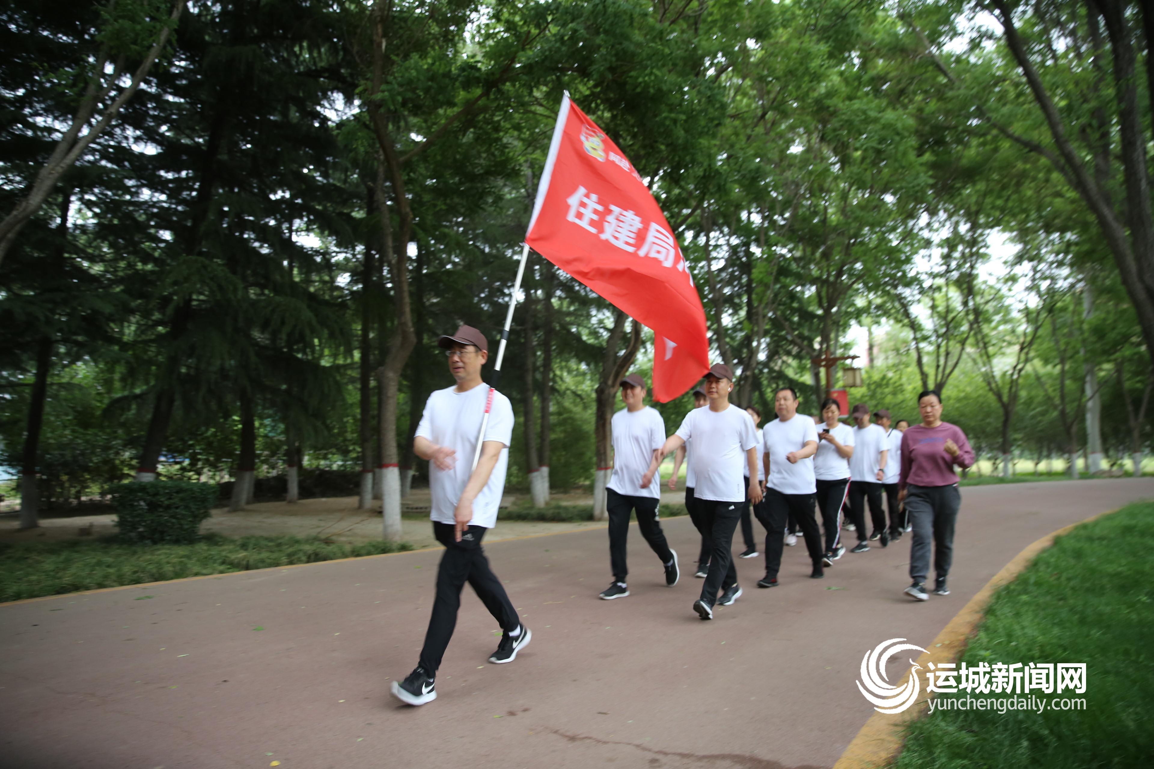 5月15日,永济市住建局冲锋队的13名队员,在该市柳园参加“万步有约”健步走活动。 当天,永济市住建局冲锋队的健步走爱好者们,从公园正门口的柳宗元汉白玉塑像为起点,绕公园柳子湖边主干道健步走,全长1200米。大家一路精神抖擞,不停高呼“走出健康,走出快乐”“日行万步,科学健走”“我运动,我快乐,我健康”等口号,尽情享受健身带来的乐趣,成为夏日公园里一道亮丽的风景线。