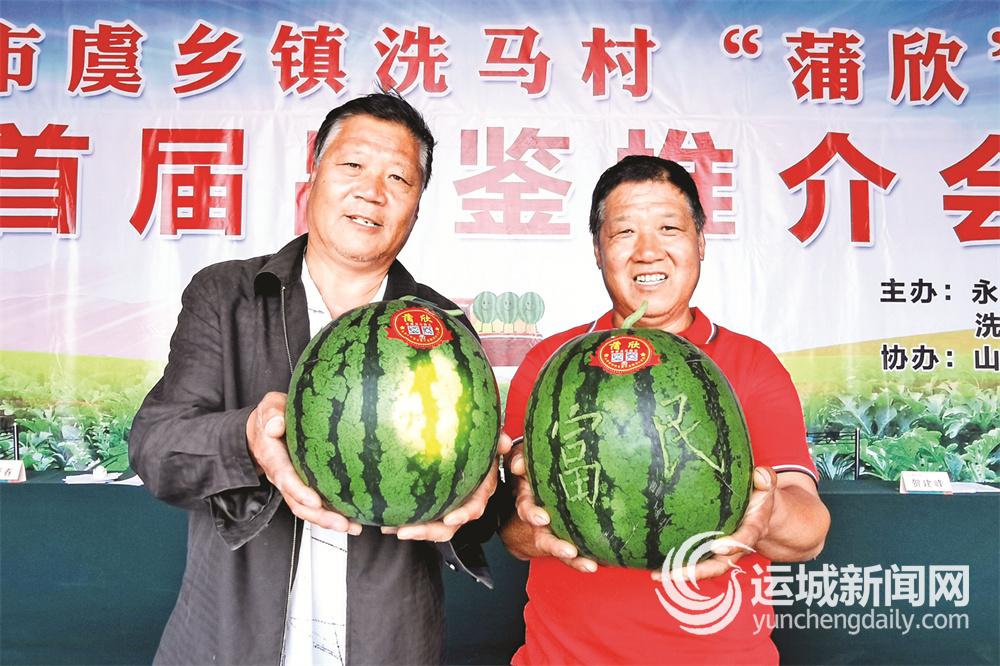 李学虎、李三虎弟兄俩在推介“蒲欣”牌洗马西瓜