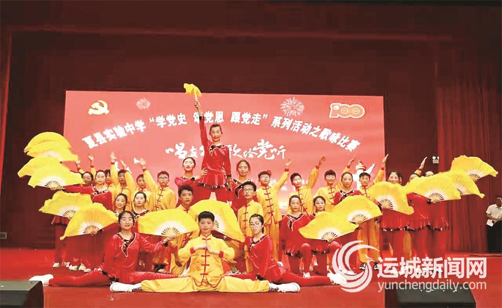 ▲5月14日下午,夏县实验中学报告厅内灯光璀璨、歌声飞扬,该校举行的“颂歌给党听”歌咏比赛激情上演。