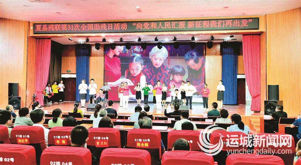 ▲5月14日,夏县残疾人代表和残联工作人员在表演节目《这一年》。当天,夏县残联在该县县委党校举办“向党和人民汇报,新征程我们再出发”残疾人文艺汇演。