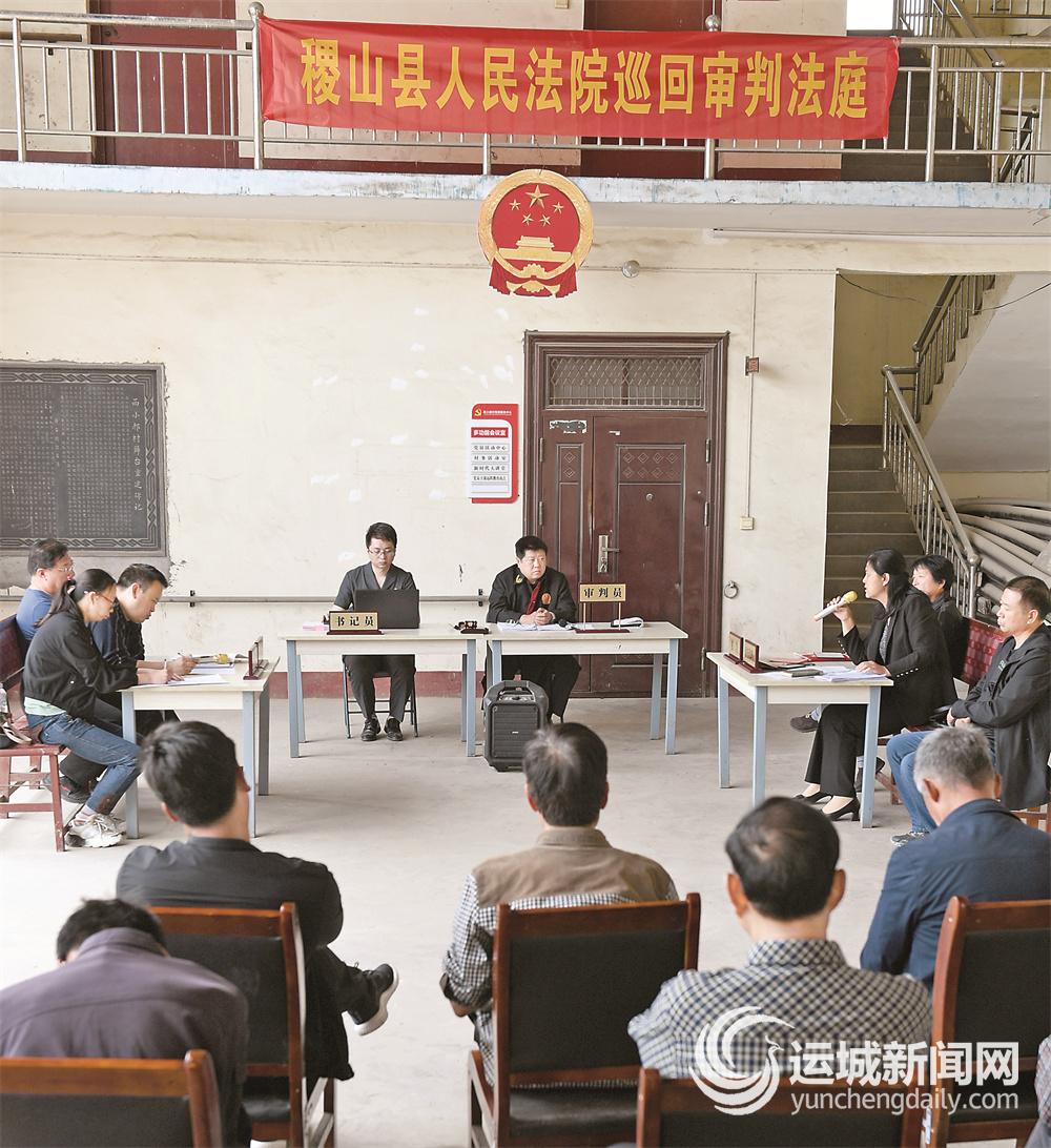 5月15日,稷山县人民法院巡回法庭法官在太阳乡西小郝村公开审理民事纠纷案件。