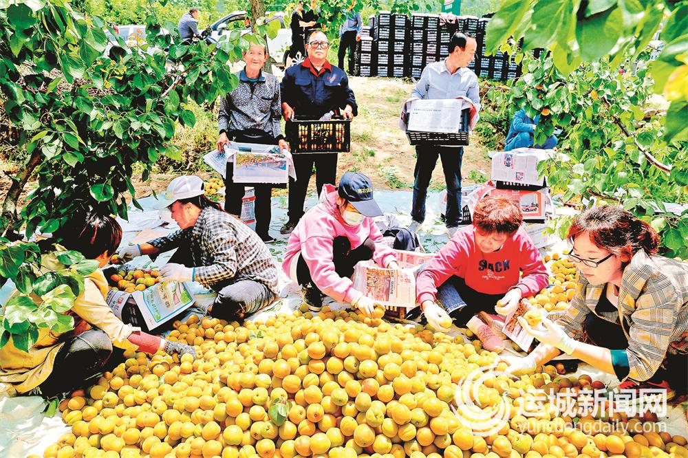 ▲5月18日,夏县瑶峰镇北山底村村民在挑拣刚采摘的早熟红杏。