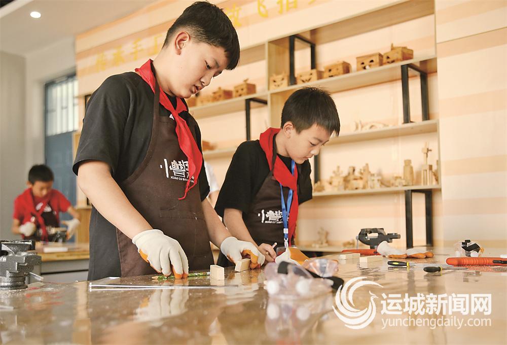 目前,周六、周日每天都有100余名青少年在该工作室学习、实践。李宜隆、宋青两位非遗传承人,也被运城市示范性综合实践基地特聘为教师。