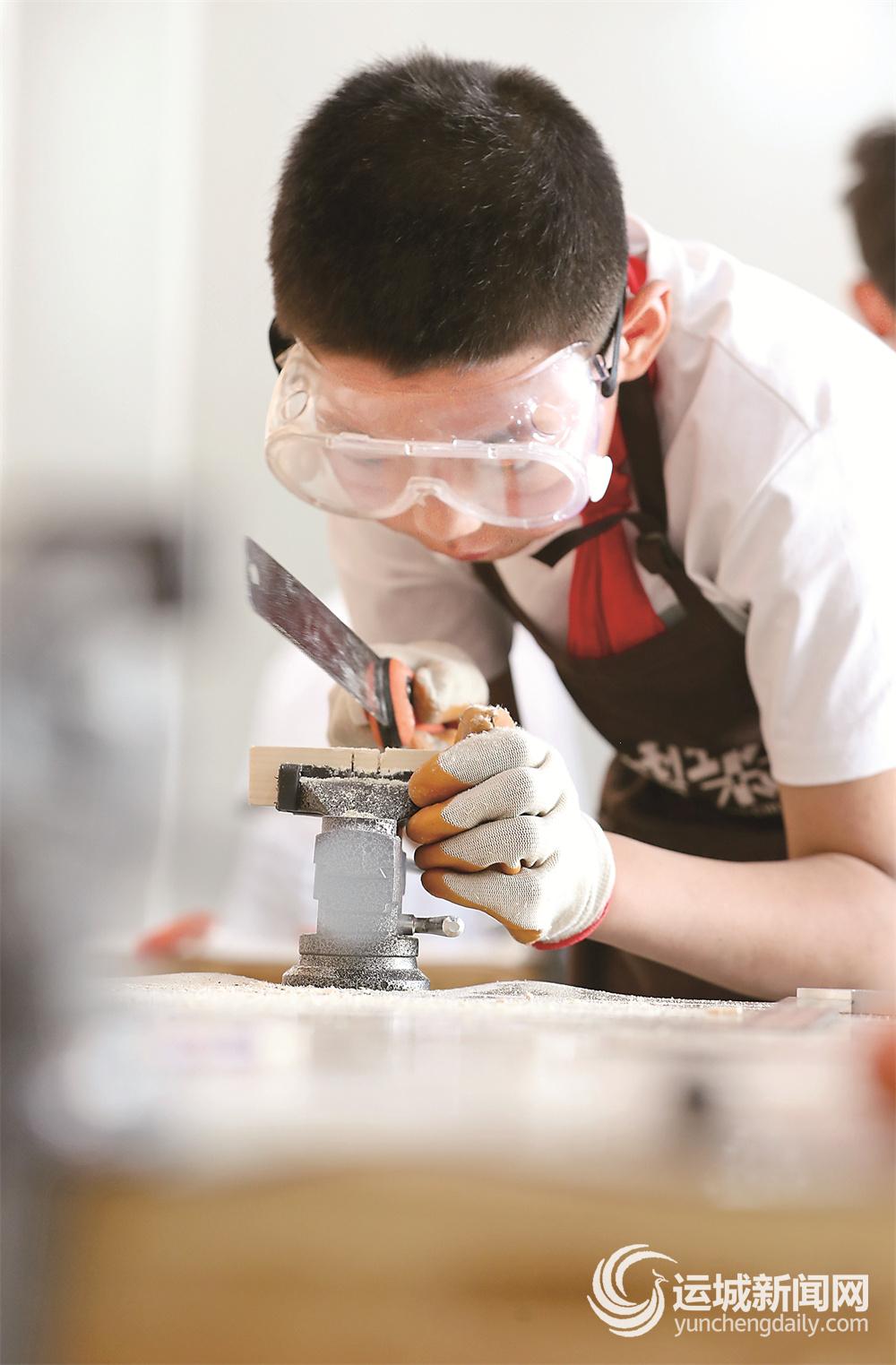 “同学们,谁知道木匠的祖师爷是谁?是谁发明的锯子……”一连串的问题被抛出后,紧接着通过有趣的故事,一一予以启发、解答。这是5月13日记者跟随市区“小鲁班木创”木制模型制作技艺市级非遗传承人李宜隆,在市区复旦大道运城市示范性综合实践基地体验“实践创新课程”时的一个场景。当天,人民路学校五年级部分学生在这里进行实践课学习。