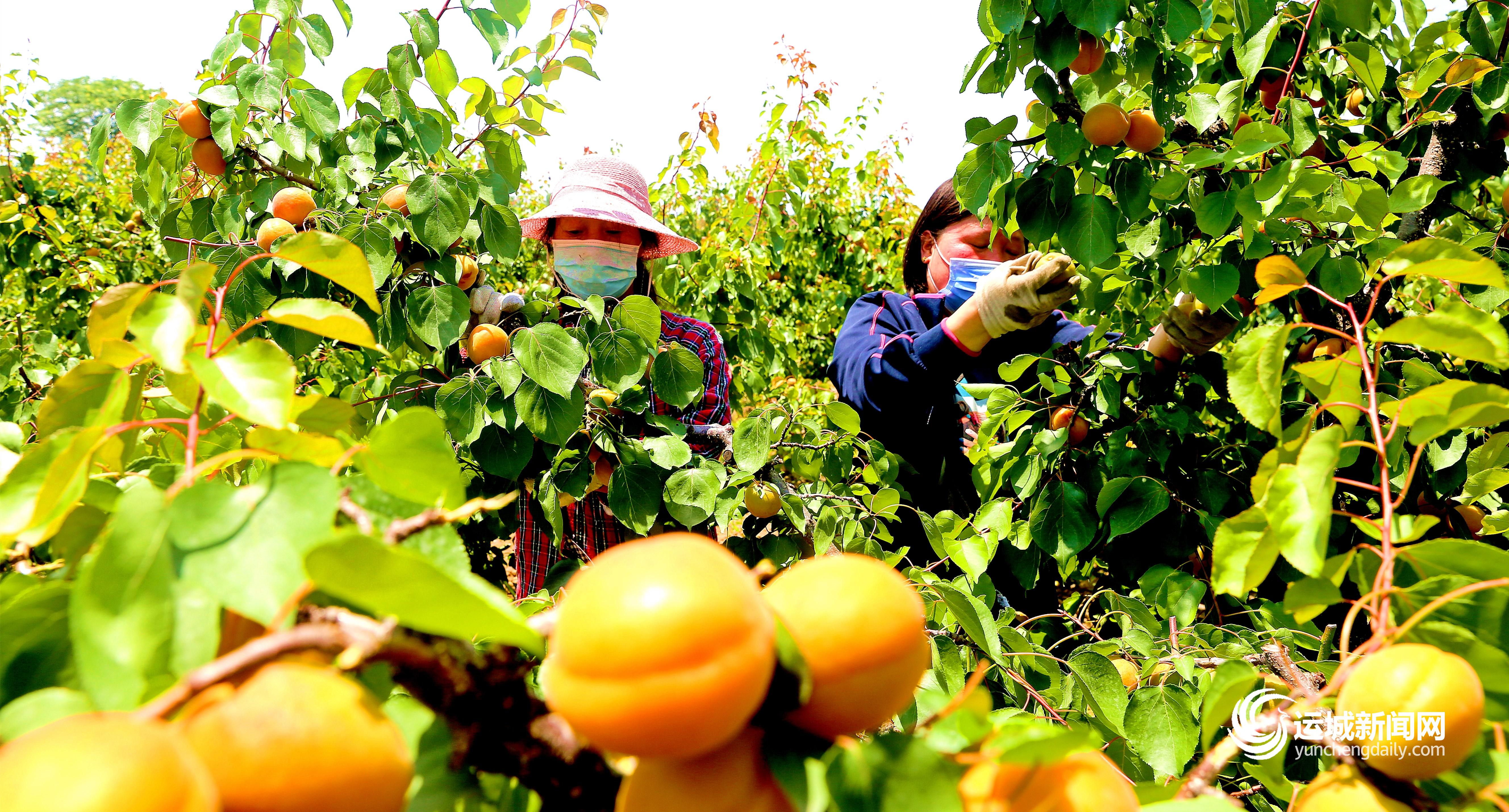 5月18日,夏县瑶峰镇北山底村村民在为客商采摘挑选“金太阳”特早熟红杏。