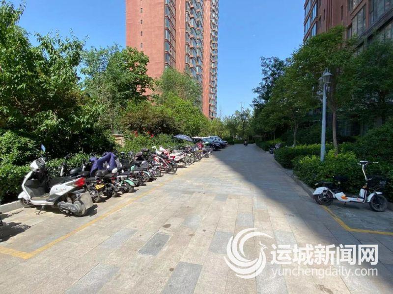 市区外滩玺园小区,居民的电动车停放在规划区域内。
