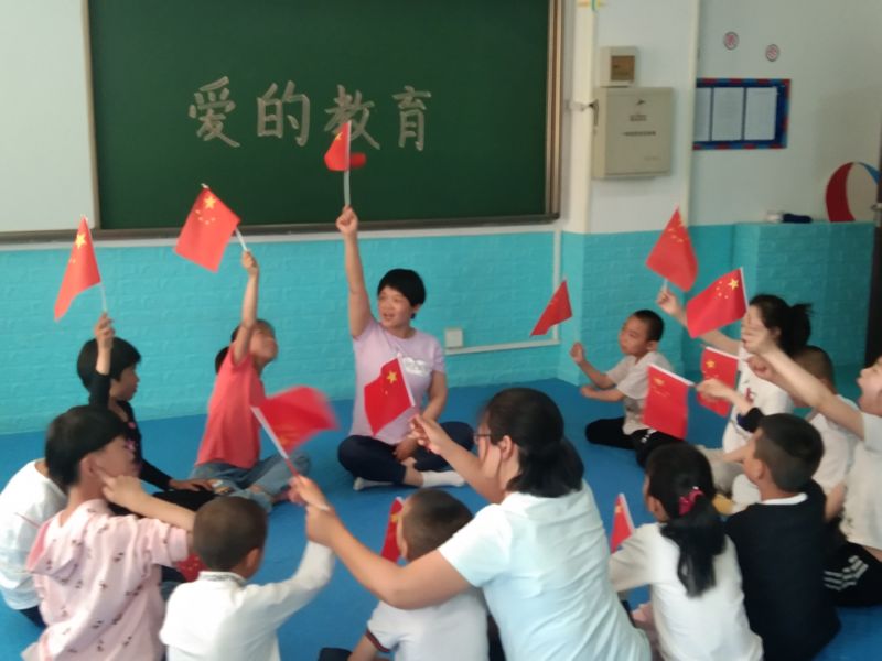 近日,在临猗县残疾人康复托养中心,临猗县特殊教育学校的教师在给学生开展爱的主题教育,教育孩子们懂得感恩祖国、孝敬父母。