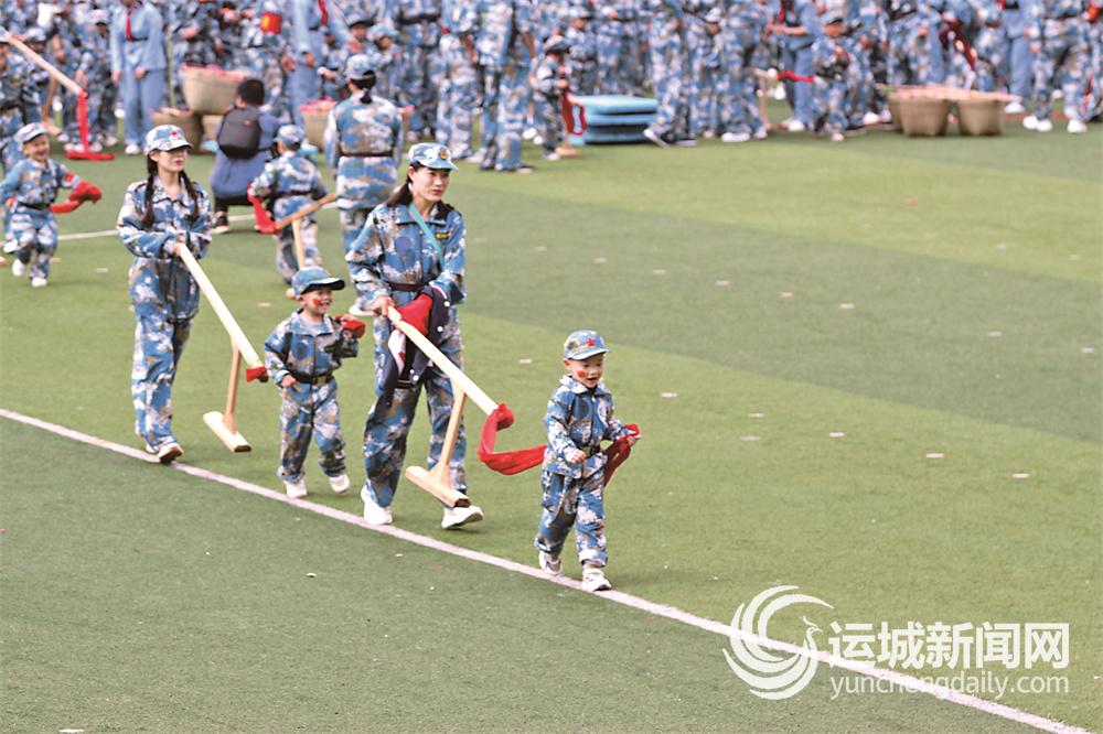 “六一”前夕,永济市示范幼儿园暨银杏分园喜迎建党百年暨庆“六一”大型主题亲子活动现场,幼儿和家长们随着《南泥湾》的节拍,依着“耕田、插秧、割稻、打谷”等“四季歌”的顺序,表演颇具创意、时尚个性的互动节目。