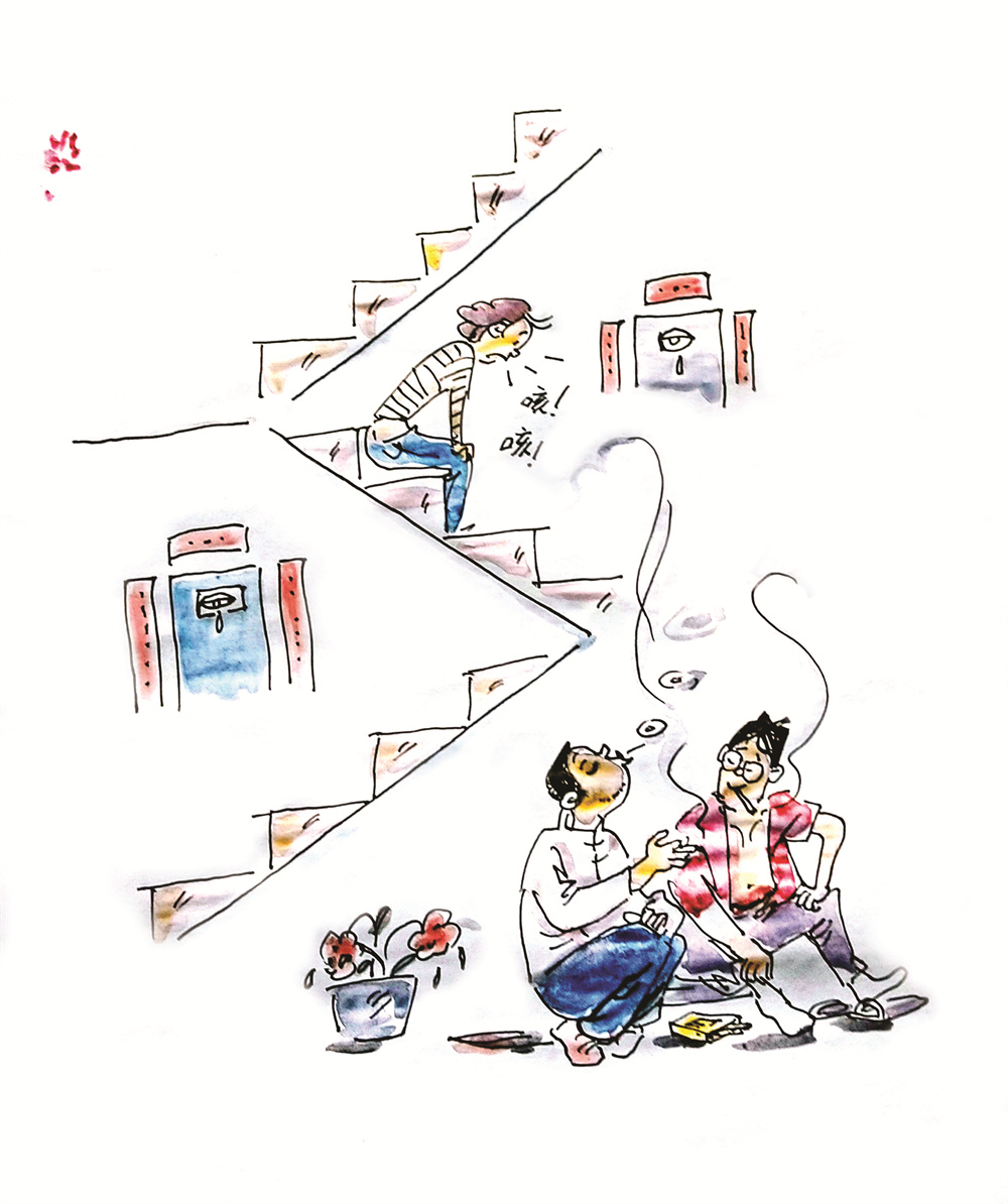 小区楼道里吸烟让人反感
