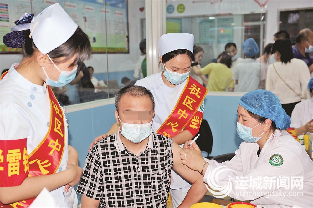 5月28日,稷山县盲人段进喜在该县爱心天使志愿者协会的帮助下,顺利接种新冠疫苗。 现年50岁的段进喜,系全盲残疾人,稷山县化峪镇上胡村村民,目前在稷山县城开了一家盲人按摩店。虽然近期几次接到所在小区接种新冠疫苗的通知,但他都因身体缺陷难以到达接种点。稷山县社区中心卫生院得知段进喜的情况后,组织该院爱心天使志愿者协会的志愿者,护送段进喜到医院接种点接种新冠疫苗。薛建磴 摄