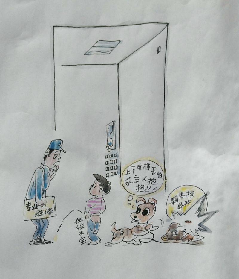 ◆专家建议:搭乘电梯前应留心松散、拖曳的服饰及物品,以防被电梯轿门夹住。带宠物上电梯的朋友也要注意了,宠物绳千万别落在外面,一旦宠物绳落在外面,宠物就会有同绳子一同被卷入电梯的危险。