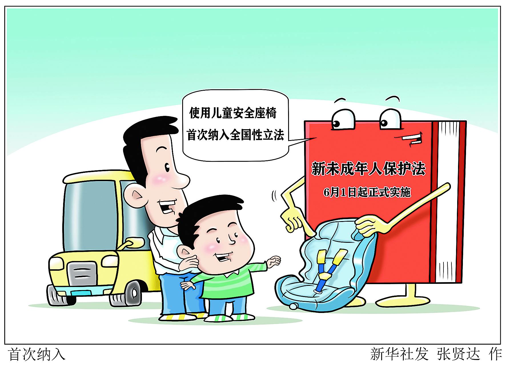 ▲新修订的未成年人保护法于6月1日起正式实施,对儿童道路交通安全提出新规定,儿童安全座椅的使用首次纳入全国性立法。 新华社发 张贤达 作