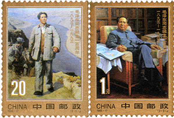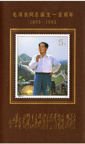 1993年12月26日,邮电部发行《毛泽东同志诞生一百周年》纪念邮票一套两枚,志号为1993-17。邮票图案名称分别为:《毛泽东在陕北》(2-1)、《毛泽东在中南海》(2-2)。同时,还发行了《毛泽东同志诞生一百周年(小型张)》。