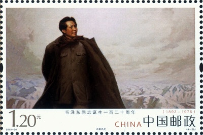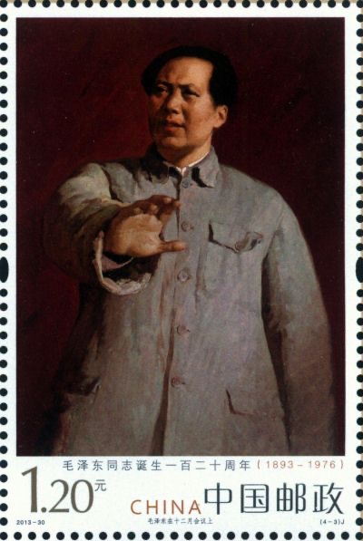 为深切缅怀伟大领袖毛泽东,中国邮政2013年11月16日发行《毛泽东同志诞生一百二十周年》纪念邮票一套四枚,志号2013-30。邮票名称分别为:《问苍茫大地谁主沉浮》(4-1)、《北国风光》(4-2)、《毛泽东在十二月会议上》(4-3)、《心潮》(4-4)。