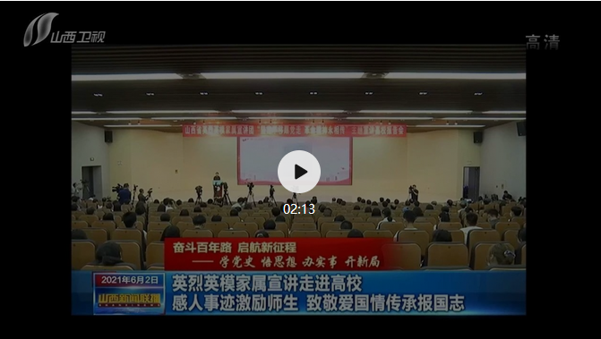 6月2日下午,五位宣讲团成员在山西大学主会场和全省82个分会场,为师生们动情讲述了英烈英模在革命战争年代不畏牺牲、英勇向前,在和平年代勇担使命忠诚奉献的动人故事,这些英烈英模事迹,激励着广大高校师生“坚定不移跟党走”,积极投身社会主义现代化国家建设新征程。