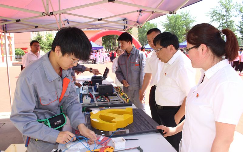 ▲6月2日,五四一高级技工学校电气自动化设备安装与维修专业学员在组装电器。