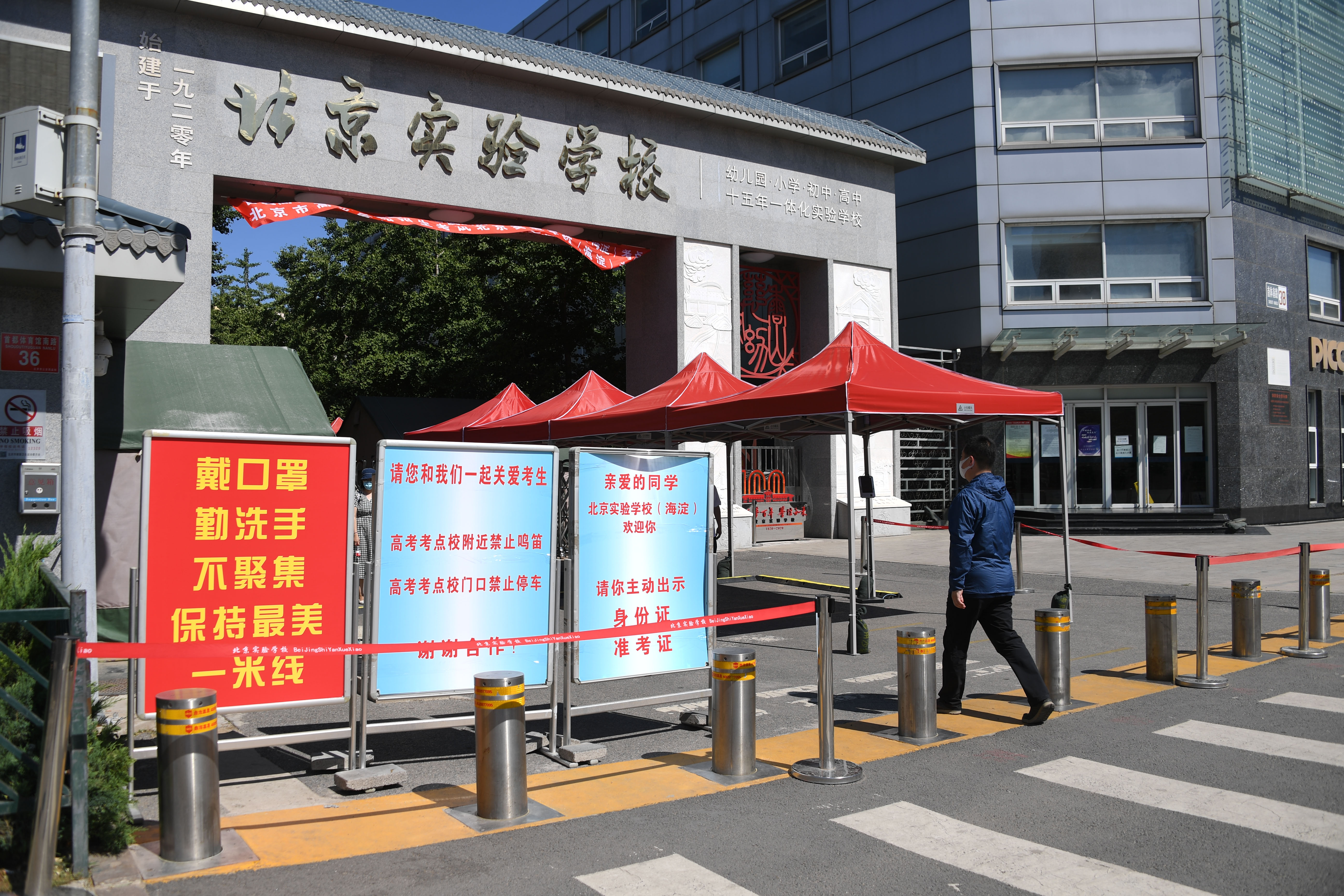 6月5日拍摄的北京实验学校(海淀)考点入口。 新华社记者 任超 摄