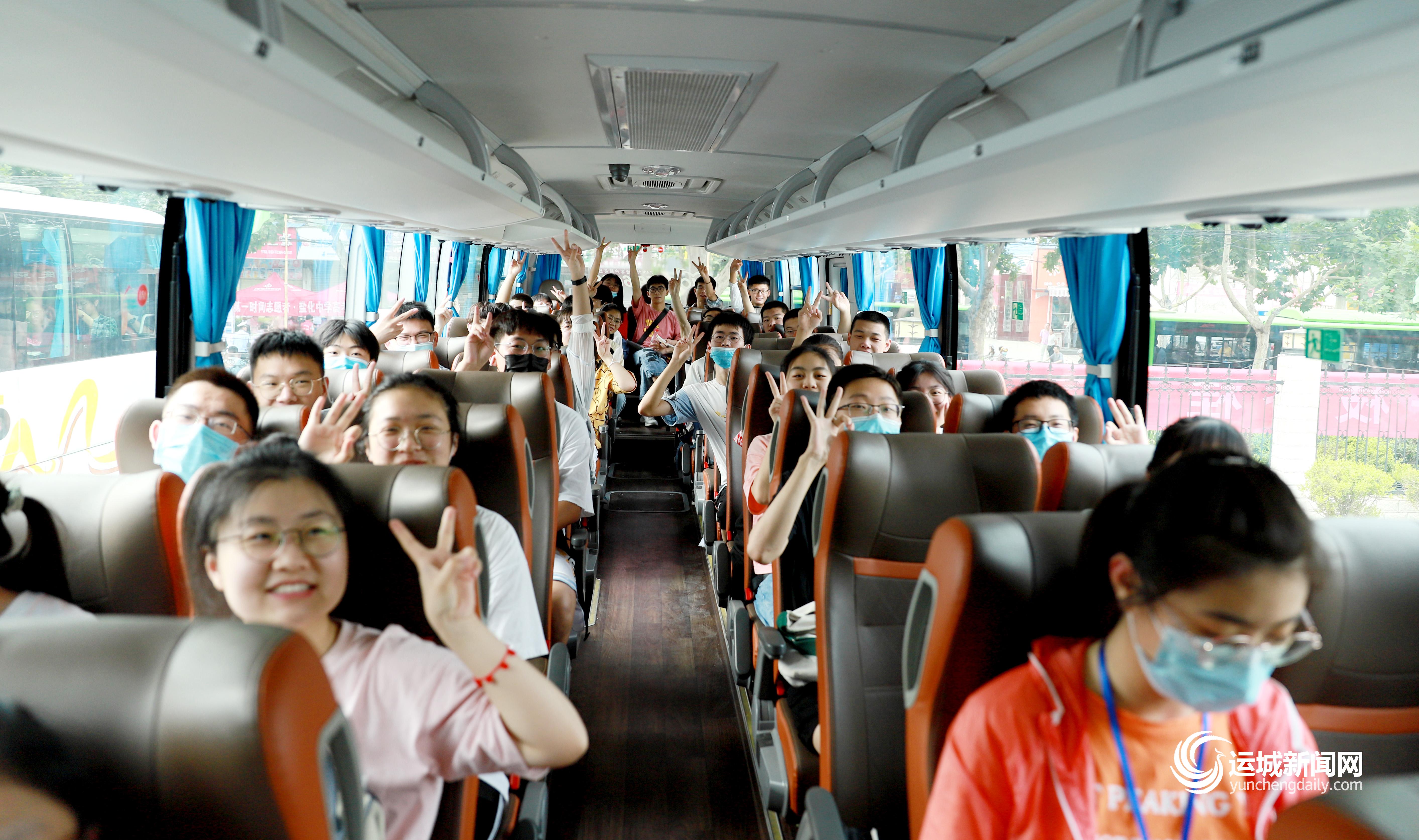 6月7日上午,356名盐化中学高考生登上老凤祥银楼和“六福珠宝”提供的8辆送考车,出发前往考场。这是老凤祥银楼第10年为盐化中学提供送考车。