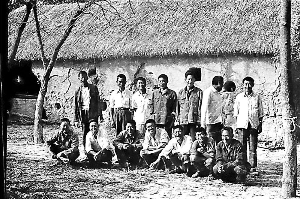 1981年,部分“大包干”带头人在茅草屋农舍前合影。 新华社发