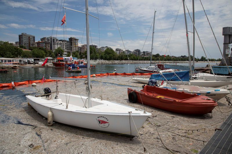 ▲6月8日,土耳其伊斯坦布尔附近马尔马拉海岸的海面上覆盖着“海鼻涕”。土耳其8日启动清理行动,清除马尔马拉海面被称为“海鼻涕”的黏液。近日,一层厚厚的黏液大量浮现马尔马拉海沿岸,并有蔓延趋势,对海洋生态构成严重威胁。这些黏液俗称“海鼻涕”,是浮游生物包括藻类释放出的胶状物质。