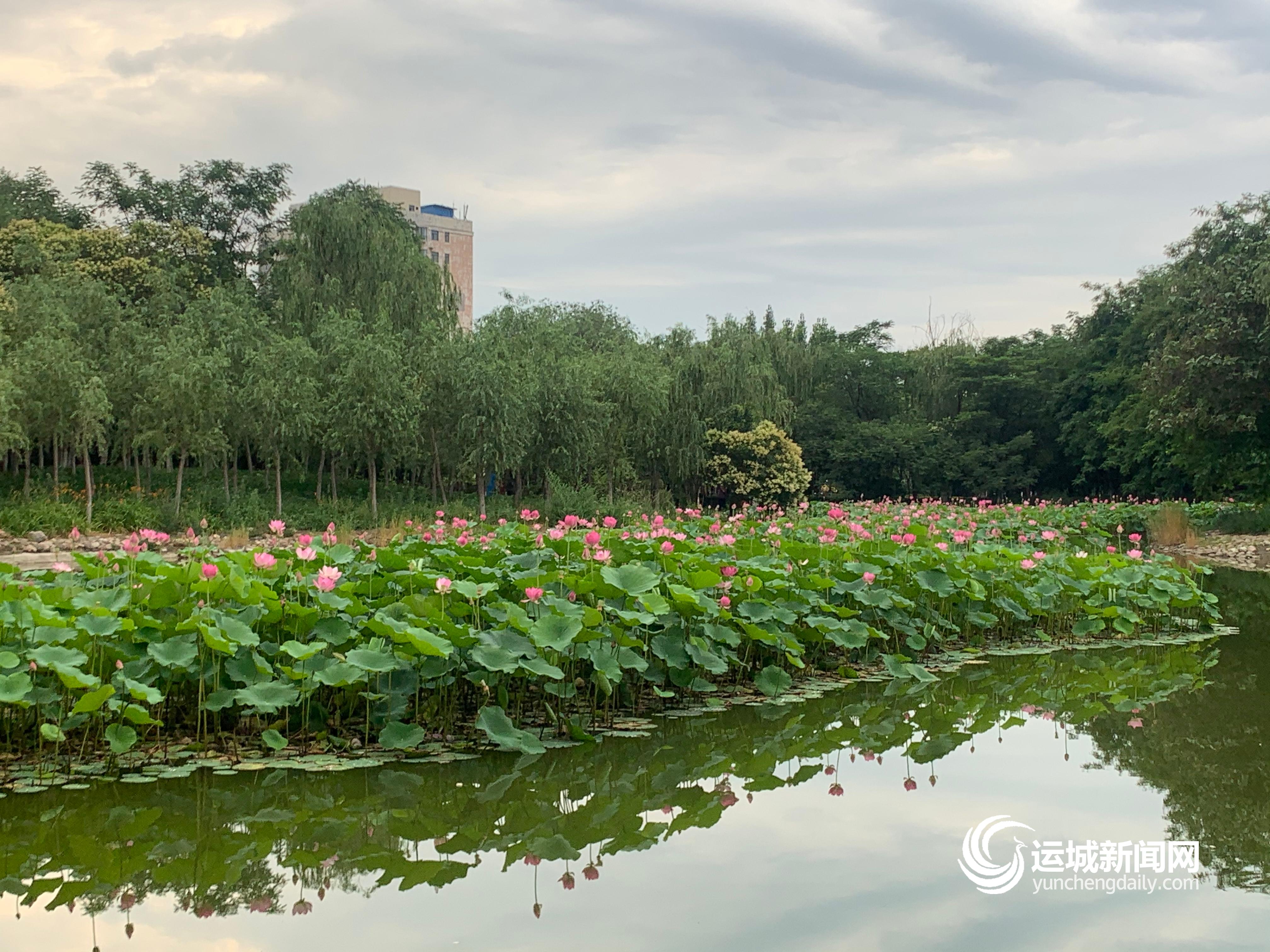 运城晚报讯(记者 廖旌汝)6月9日,在市区圣惠公园,大片的荷花盛开,吸引了不少市民前来观赏。