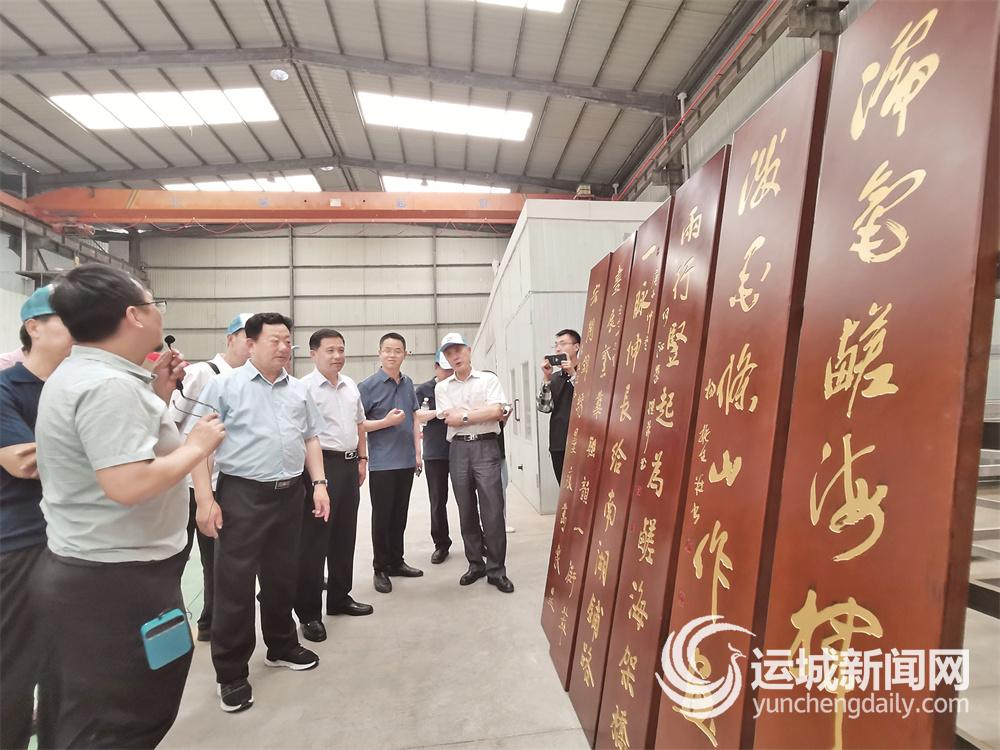 6月11日,省、市楹联人在位于运城经济技术开发区钢材市场的山西世纪品盛广告有限公司参观。作为中国楹联学会挂牌的全国唯一“中国楹联制作基地”,该公司是河东楹联文化的重要载体,其产品销往全国10多个省市。 景斌 摄
