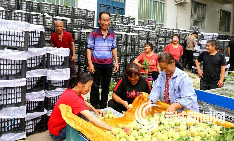 6月13日,夏县胡张乡枣元村村民在挑选包装毛桃。