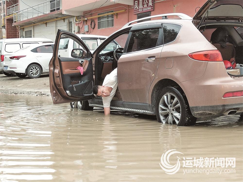 运城晚报讯(记者 崔萌)连续两天的降雨,致使盐湖区安邑西路与铺安街交会处北50米的下水道口破损堵塞,造成积水。6月17日下午,东北梅河人家海鲜烧烤店负责人何玉成趴在汽车座椅上,徒手疏通堵塞的下水道(右图)。