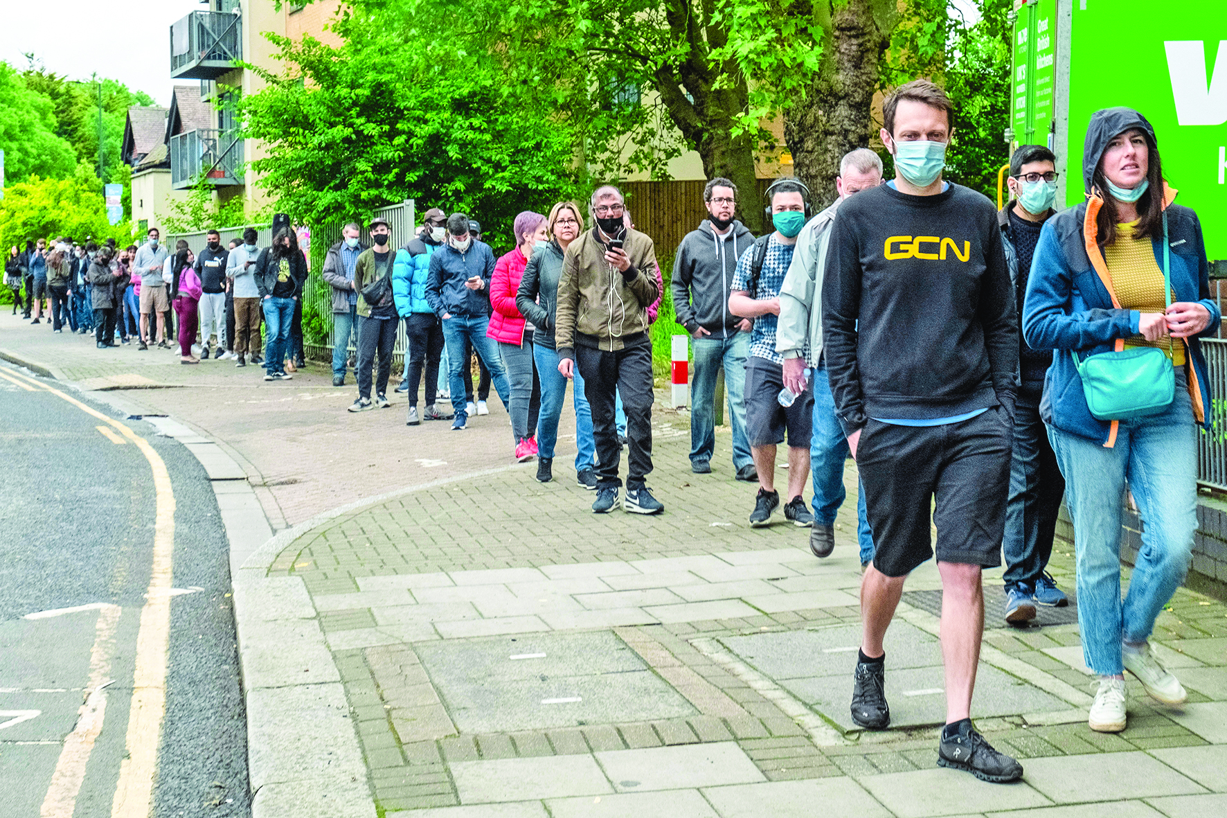 ▲6月19日,人们在英国伦敦一家新冠疫苗接种中心外排队。英国英格兰地区18日起面向年满18岁人群放开新冠疫苗接种。英国政府希望,到7月19日彻底“解封”时,所有希望接种疫苗的成年人都能接种上至少1剂疫苗。