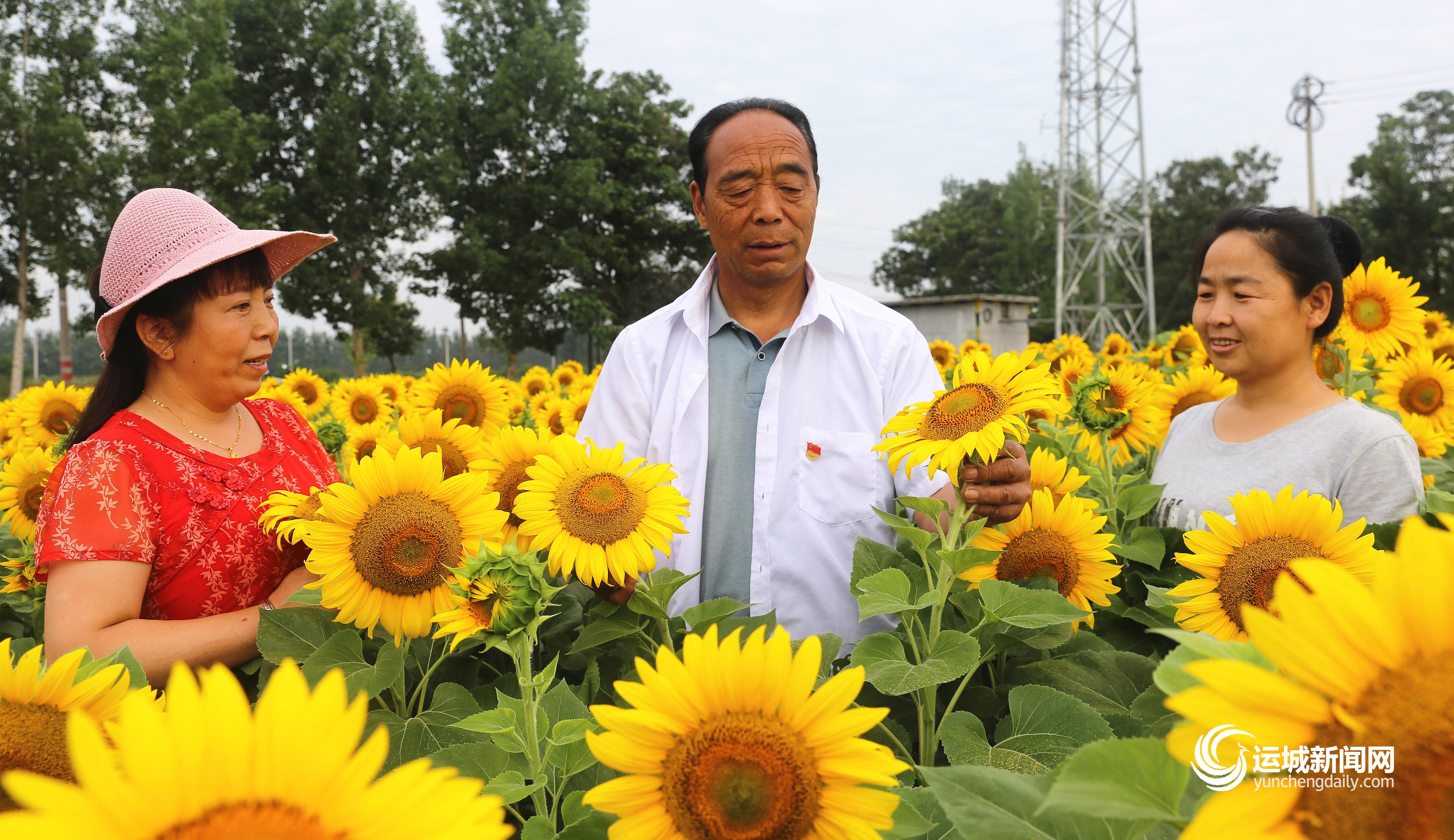 6月20日,夏县瑶峰镇小郭村村民在观察油葵长势和治虫情况。