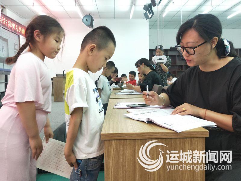 6月20日上午9时,社区硬笔书法公益课堂按时开课。主讲人张莎莎讲完几个汉字结构及书写方法后,让课堂上的10多名小学生书写练习,她一一批改和点评。家长杨连静坐在后面,认真听讲、练习。