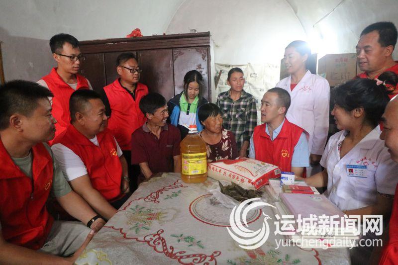 ▲近日,闻喜县爱心志愿者协会的志愿者来到后宫乡南白石村,为该村残疾困难户张卫平,送去米、油等慰问品。