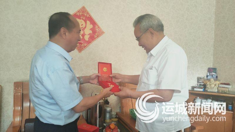 运城晚报讯(记者 陶登肖)“我们的生活发生了翻天覆地的变化,这都是党领导得好。感谢党中央给我们颁发奖章,太珍贵了。”有着50年党龄的师自名激动地说。6月23日上午,市总工会工作人员走进市总工会老党员家中,为他们送上“光荣在党50年”纪念章。
