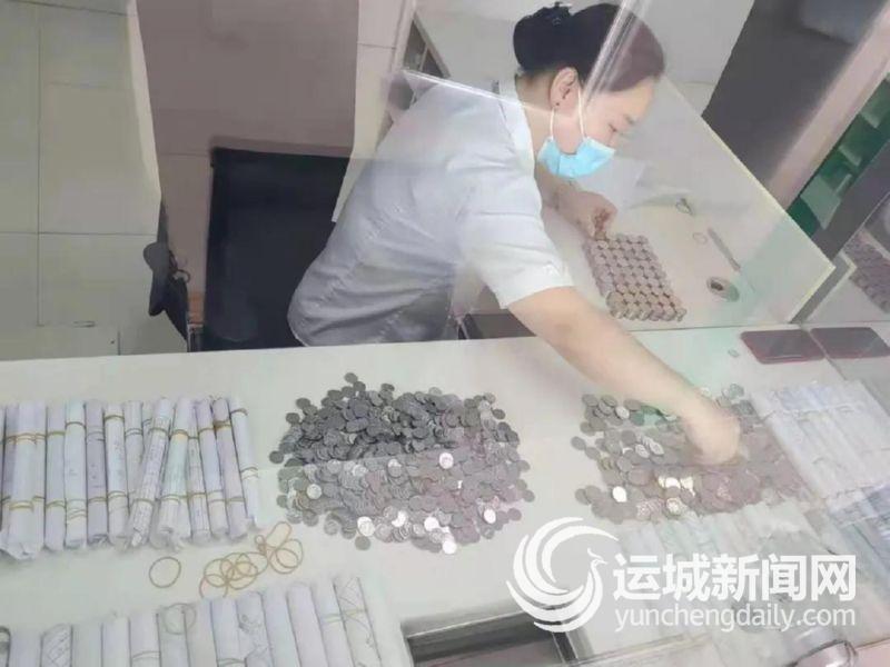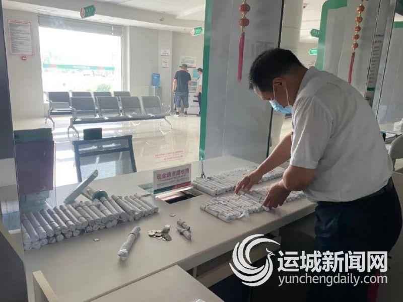 近日,运城农商银行三家庄支行员工不惧烦琐,帮客户清点9万元零钱,受到称赞。