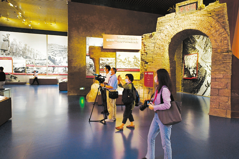 6月25日,全国各地媒体记者来到中国共产党历史展览馆参观学习。百年时光隧道中,山西人民奋斗的足迹,汇集为厚重的红色历史。3400延米展线上,一场场气壮山河的斗争,一个个彪炳史册的奇迹,让“山西元素”熠熠生辉。图为展览中“山西元素”的呈现。本报记者孙荣祥摄