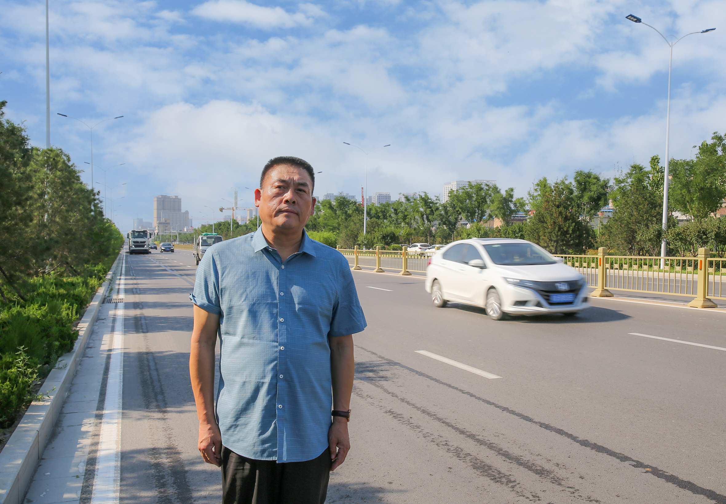 图⑤:张建清在市区中银北路(原王庄段)