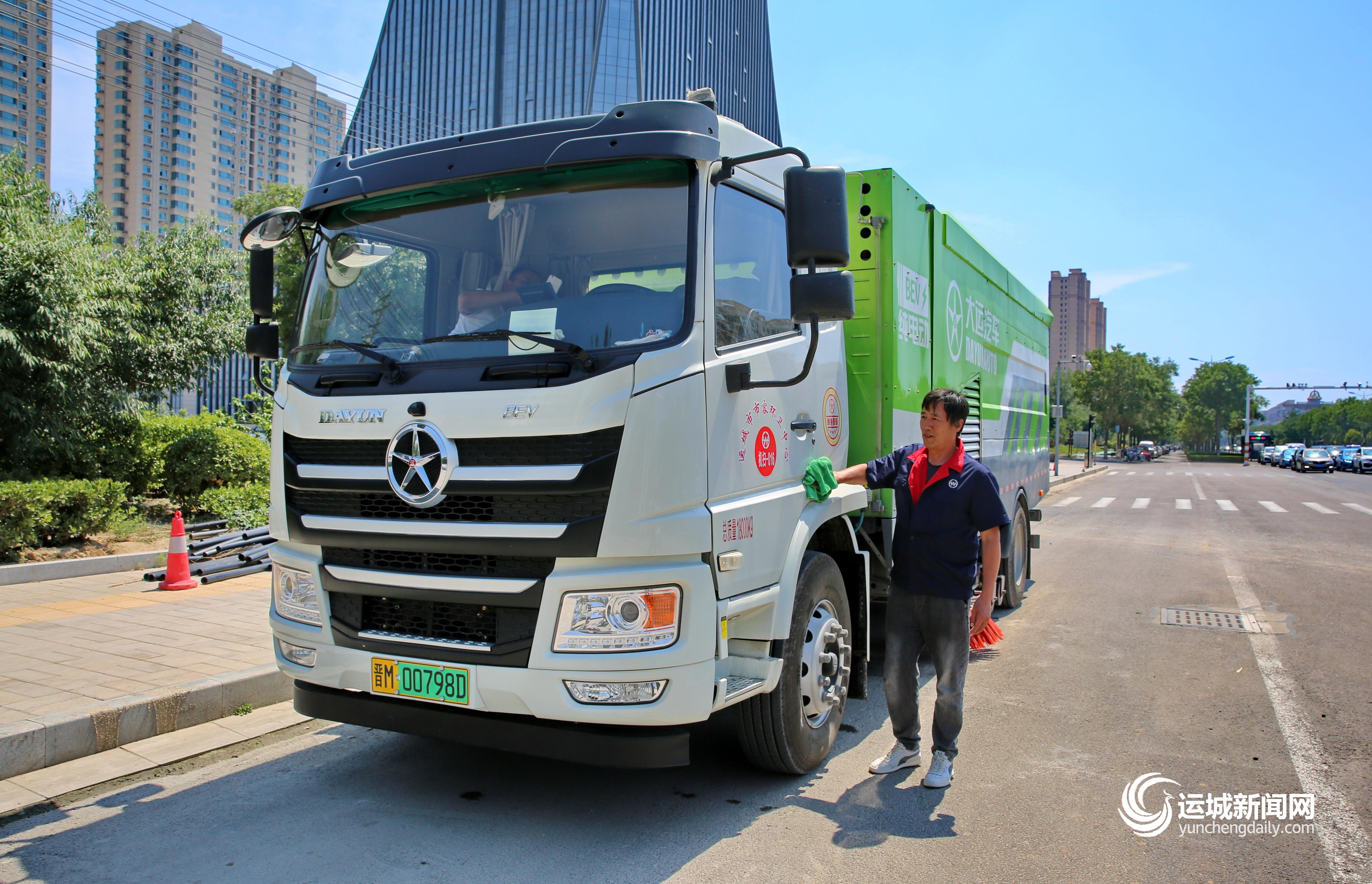 图⑤:市环卫中心东队机扫车司机王红兵在擦拭清扫车