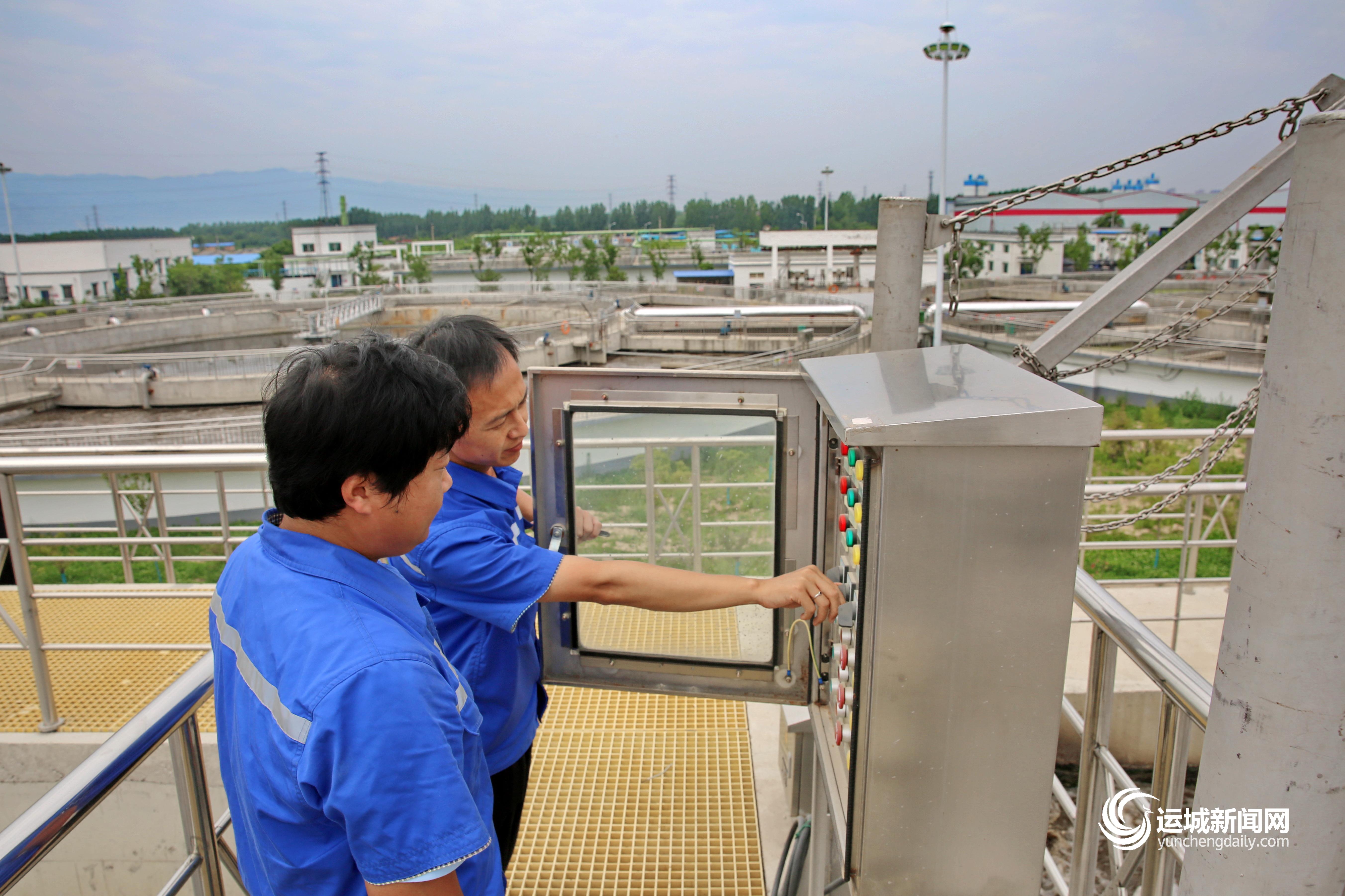 图①:运城首创城东污水处理厂工作人员范晓飞(右)在检查设备 “每天的检查工作很枯燥,但特别有意义。污水经过我们处理就可以二次使用,特别有成就感。”范晓飞说,“我相信在中国共产党的领导下,我们的生活会越来越好。”